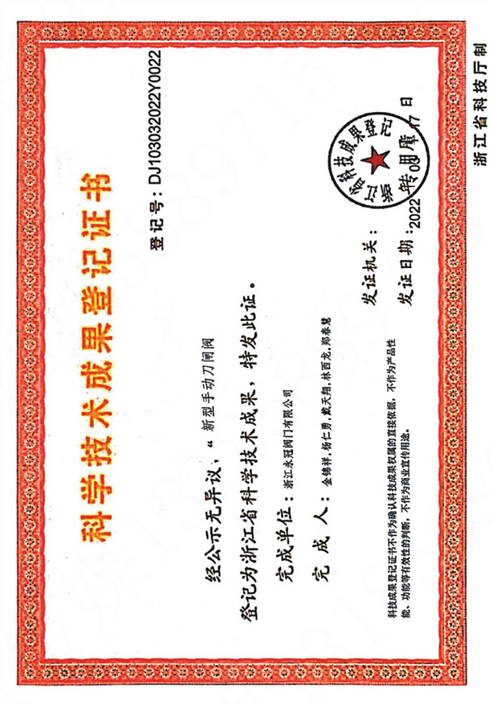 科技技術成果登記證書